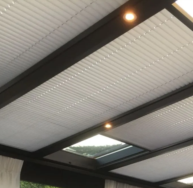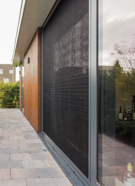 Strakke en moderne zonwering die warmte buiten houdt zonder het zicht te belemmeren.